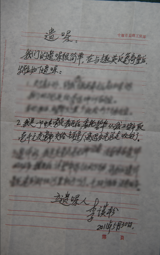李謨(mo)松生怕他的愿望被(bei)疏忽或(huo)遺(yi)忘(wang),趁他還能動筆的時候,就(jiu)悄(qiao)悄(qiao)地在遺(yi)囑里(li)面(mian)寫下了(le)去世后向黨組織(zhi)交納1000元黨費(fei)的(de)心愿。2018年2月(yue),彌留之(zhi)際的(de)(de)李謨松拉(la)著老伴的(de)(de)手(shou)說:“別忘(wang)了向黨組(zu)織(zhi)交(jiao)納我的(de)(de)黨費……”李謨松去世后,他(ta)的(de)(de)老伴才發現他(ta)的(de)(de)叮(ding)嚀(ning)和(he)囑(zhu)托不僅(jin)僅(jin)是口頭的(de)(de)交(jiao)代,而且(qie)還寫進(jin)了遺(yi)囑(zhu),是真情實意(yi)對黨恩情的(de)(de)一(yi)片(pian)流(liu)露,感(gan)動的(de)(de)她兩行熱淚奪眶而出……她心里(li)默默地說,老李,放心,我一(yi)定把你(ni)的(de)(de)遺(yi)愿(yuan)向黨組(zu)織(zhi)表(biao)達,實現你(ni)刻在骨子里(li)的(de)(de)愿(yuan)望。