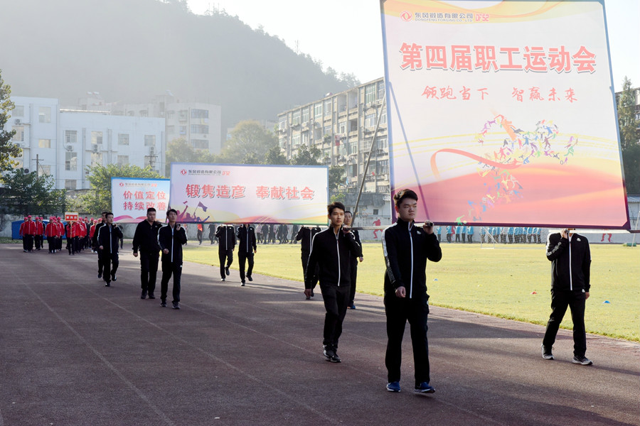 東風(feng)鍛(duan)(duan)造有限(xian)(xian)公(gong)司、東風(feng)汽(qi)車鍛(duan)(duan)鋼件有限(xian)(xian)公(gong)司、湖北神(shen)力鍛(duan)(duan)造有限(xian)(xian)公(gong)司三個單位的15支代(dai)表隊的600余名(ming)運動(dong)員參加了運動(dong)會。此次運動(dong)會除保留了傳統的男女100米、800米(mi)賽跑競技項(xiang)目外,還(huan)設置了“車輪滾滾”、“雷霆戰鼓”、“步調(diao)一致”、“珠行萬里(li)”、“同舟共濟”、“高管趣味(wei)接力”等(deng)趣味(wei)運動項(xiang)目。